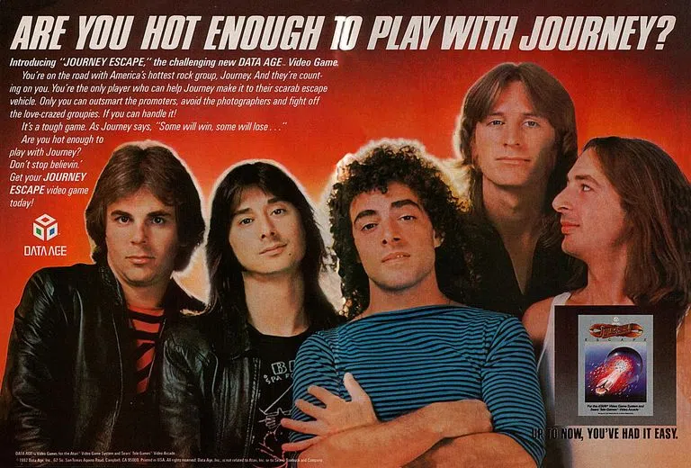 In the early eighties, Journey was at the top of their game. With the success of their seventh studio album Escape in 1981, Journey was packing stadiums across the country, and in 1983, finished their eight studio album titled Frontiers. To capitalize on their success, the band was involved in a number of entertainment-related business ventures including a documentary with NFL Films and commercials. One of the more interesting of Journey’s business ventures was two video games based on their album Escape.
